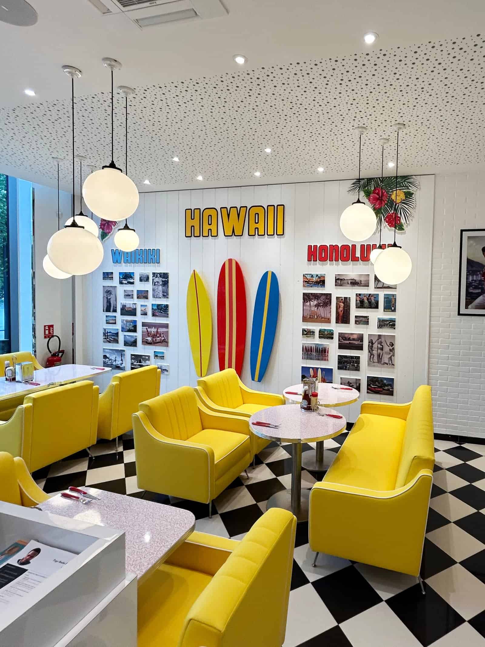 Nous réalisons également pour Holly’s Diner un élément décoratif spécifique à leur univers : les planches de surf décoratives, produites et personnalisées pour habiller certains espaces des restaurants.
