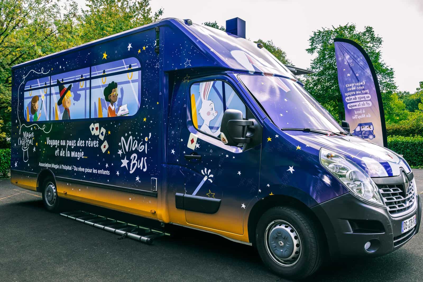 L’association Magie à l’hôpital nous a confié la réalisation du flocage du Magibus, un véhicule itinérant destiné à apporter un moment d’évasion et de rêve aux enfants hospitalisés.