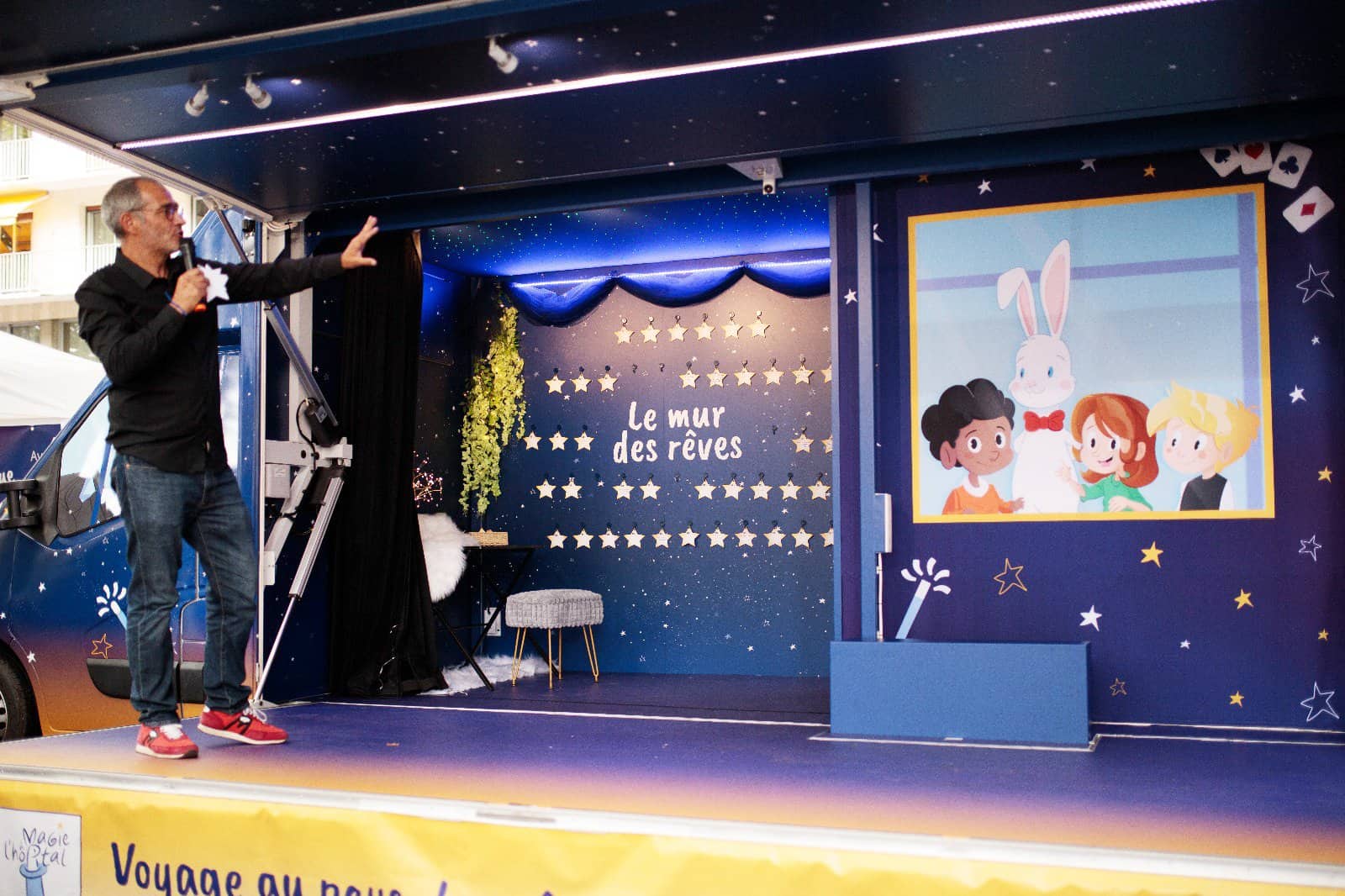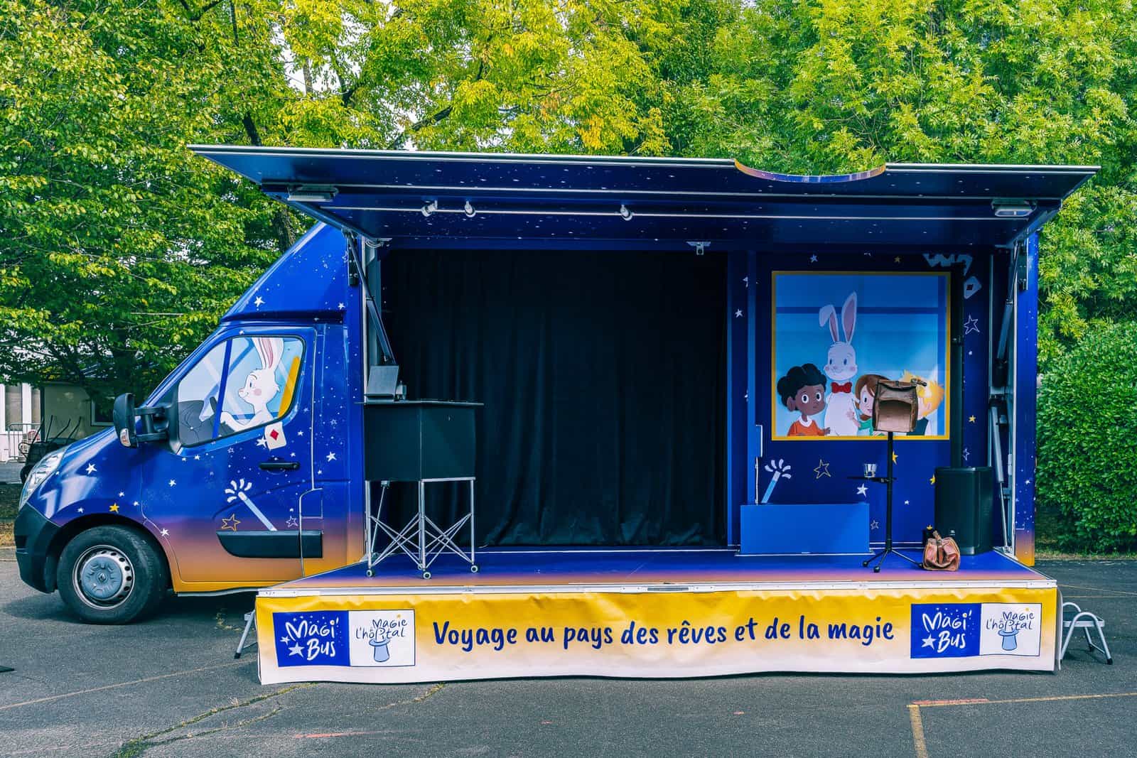Le Magibus devient ainsi un véhicule identifiable, porteur de l’univers magique de l’association et capable d’attirer immédiatement l’attention lors de ses déplacements.